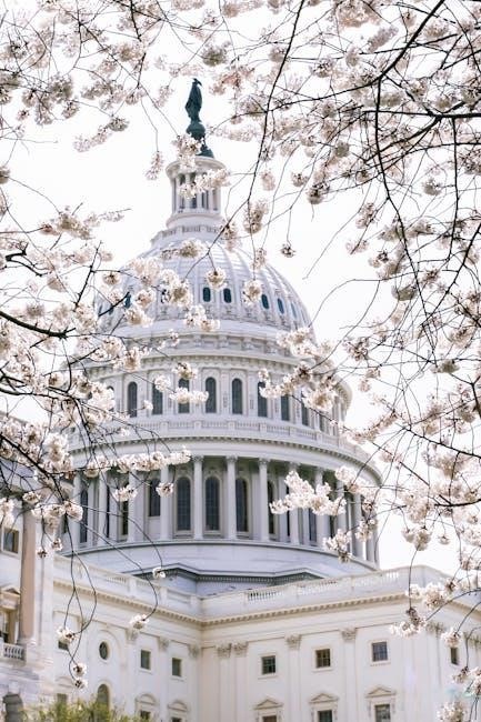 Congress holds the authority to levy taxes, declare war, and regulate commerce, both domestically and internationally. It is responsible for proposing, debating, and passing legislation to address national issues. Congress also conducts oversight of the executive branch through investigations and hearings, ensuring accountability. Additionally, it approves presidential appointments, including Supreme Court justices and cabinet members, and ratifies treaties. Congress controls government spending, allocating funds for various programs and services. Its powers extend to amending the Constitution, providing a mechanism for legal evolution. These responsibilities ensure Congress plays a central role in shaping the nation’s policies and maintaining governmental balance.